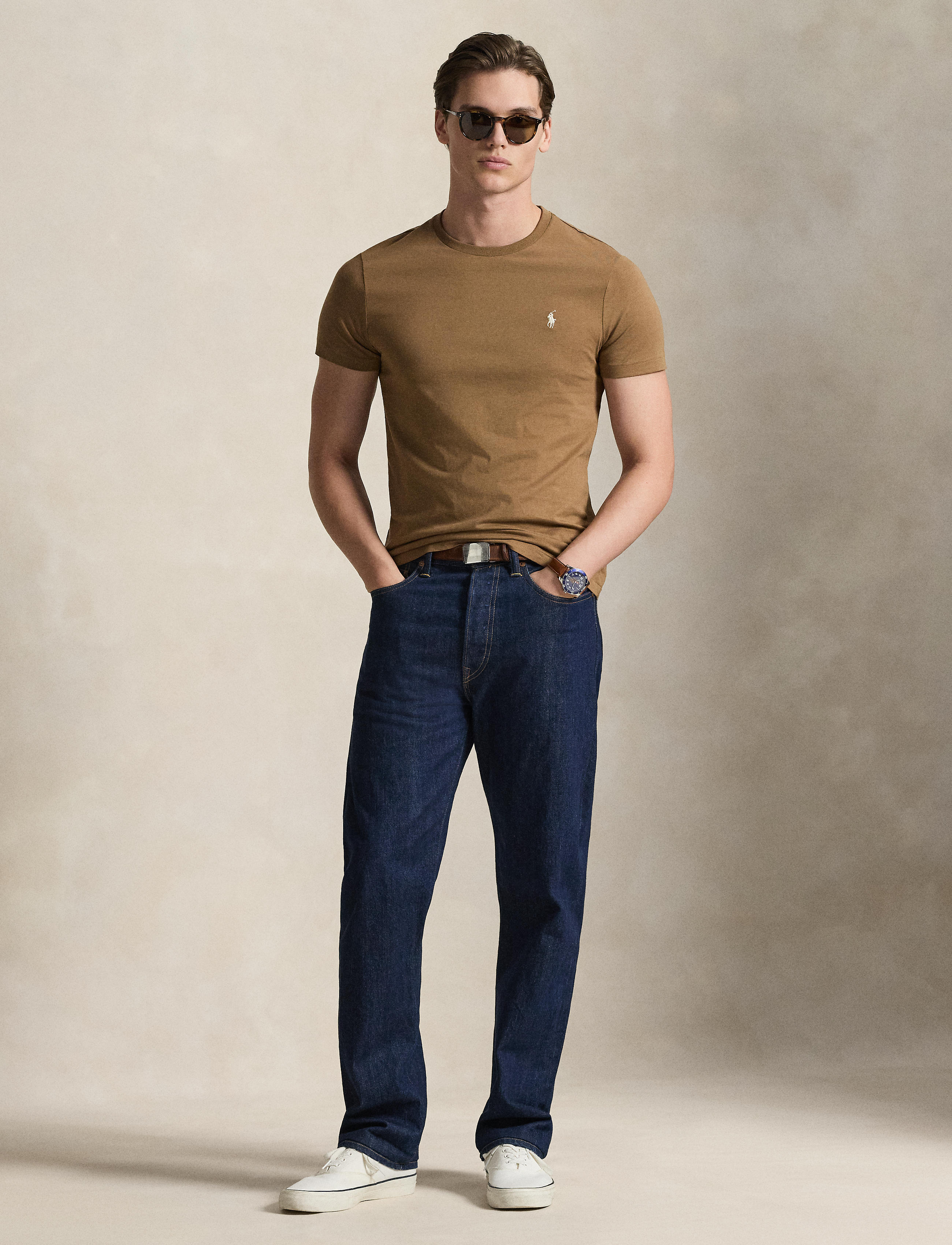 Washed for a perfectly broken-in look and feel, this cotton T-shirt is a Polo essential you’ll reach for again and again. Custom Slim Fit: Slightly fitted through the chest and the waist. Size ... Sjá nánar