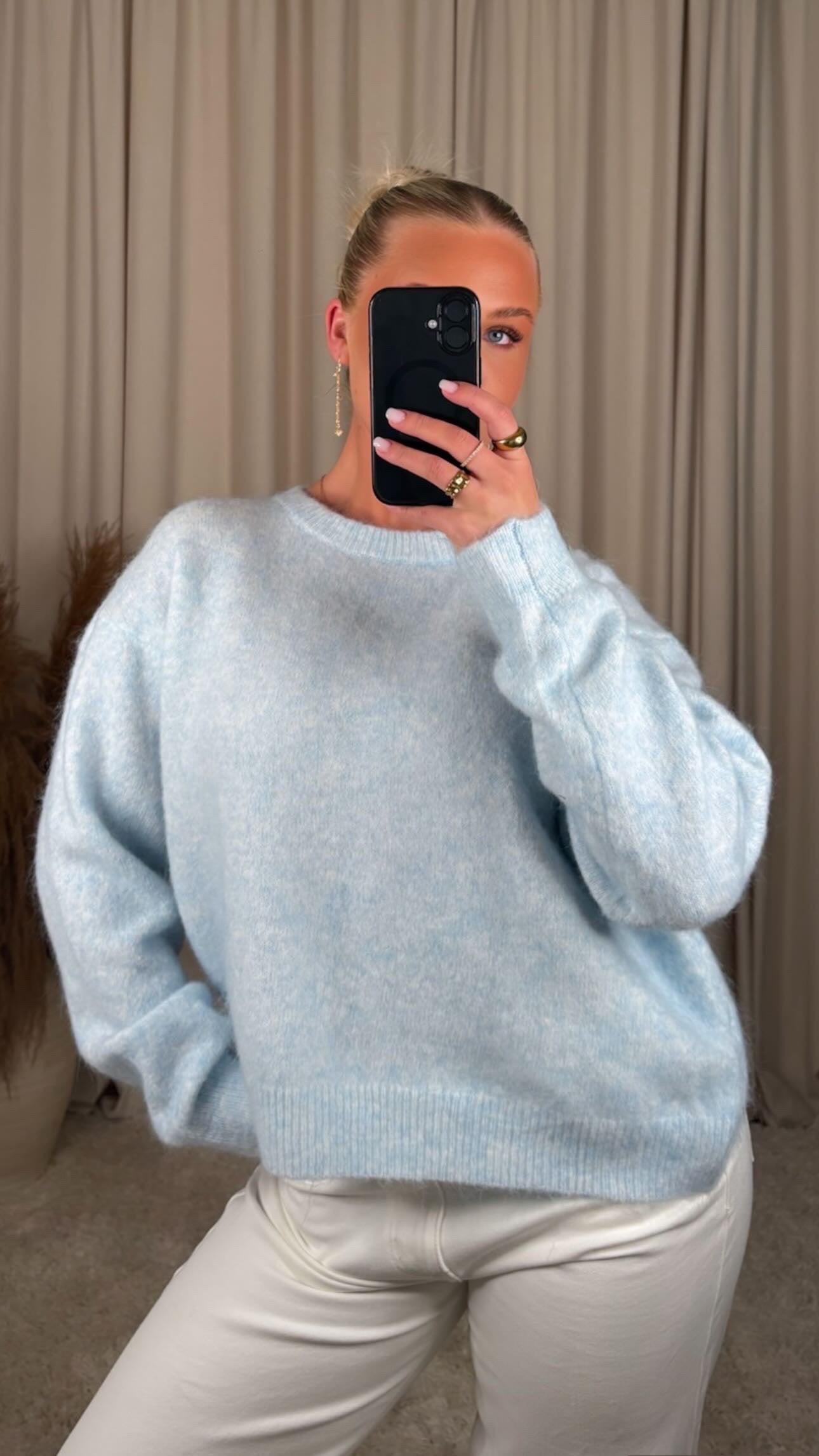 Æðislega falleg peysa úr mjög mjúku og þæginlegu efni, það er teygja í efninu og peysan er one size og passar á S-M-L