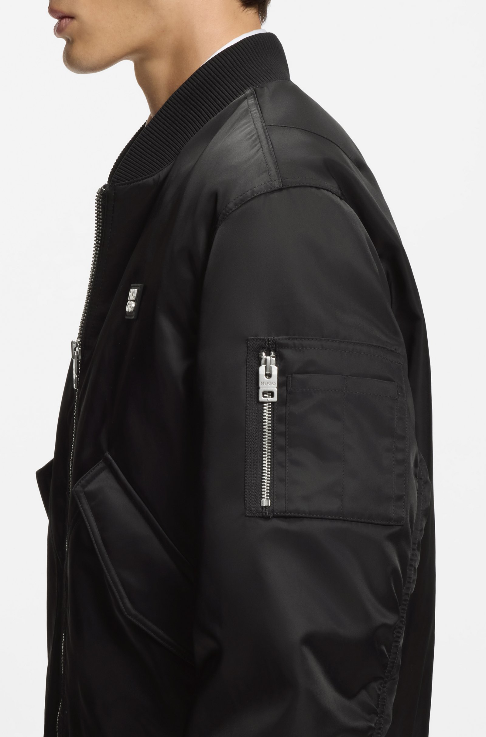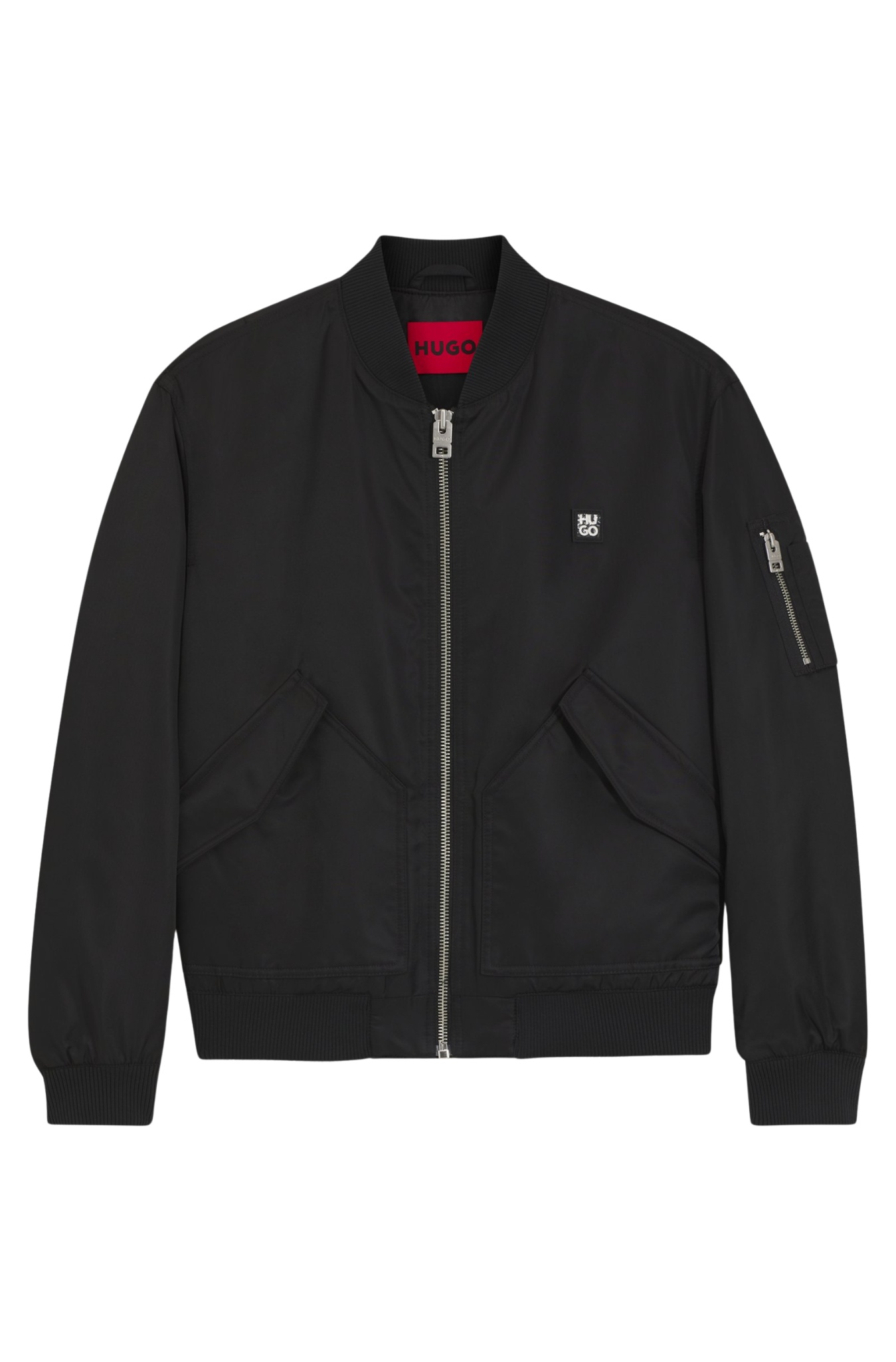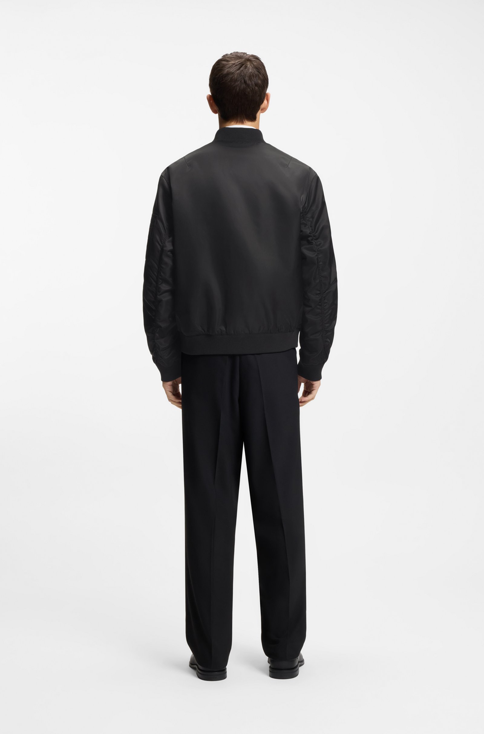 Keep dry and warm with the protective finish and lightweight padding of this zipped HUGO Menswear bomber jacket. Straight fit. Stacked-logo trim. Smooth lining. Regular fit Stand collar Stand ... Sjá nánar