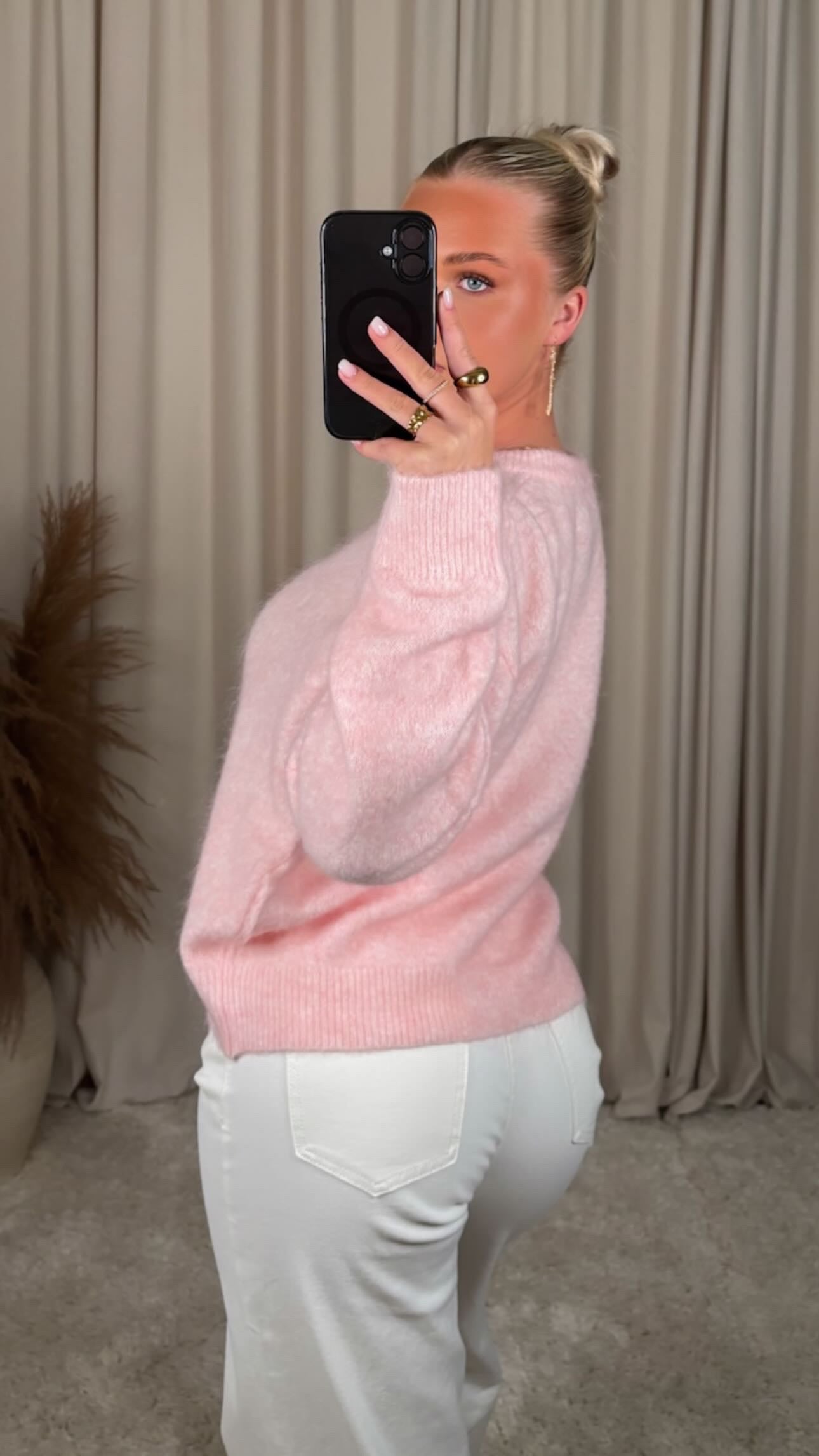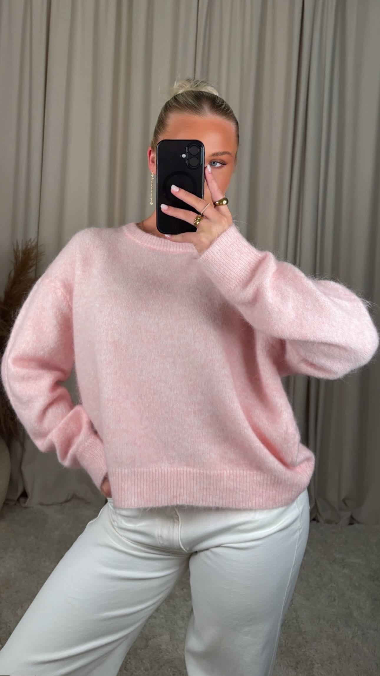 Æðislega falleg peysa úr mjög mjúku og þæginlegu efni, það er teygja í efninu og peysan er one size og passar á S-M-L